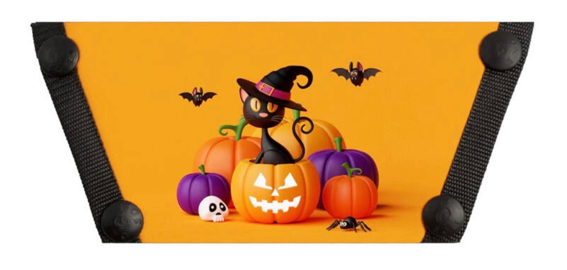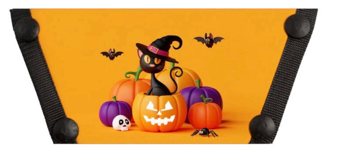 Black cat in pumpkin Halloween print Interchangeable neoprene shoe tops